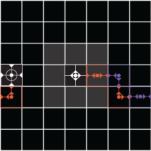 Si un adversaire rejoint en une case, déjà établie par une Pièce Chemin, un chemin en cours de construction ou construit lors d’un tour précédent, il crée une Boucle Infinie.
